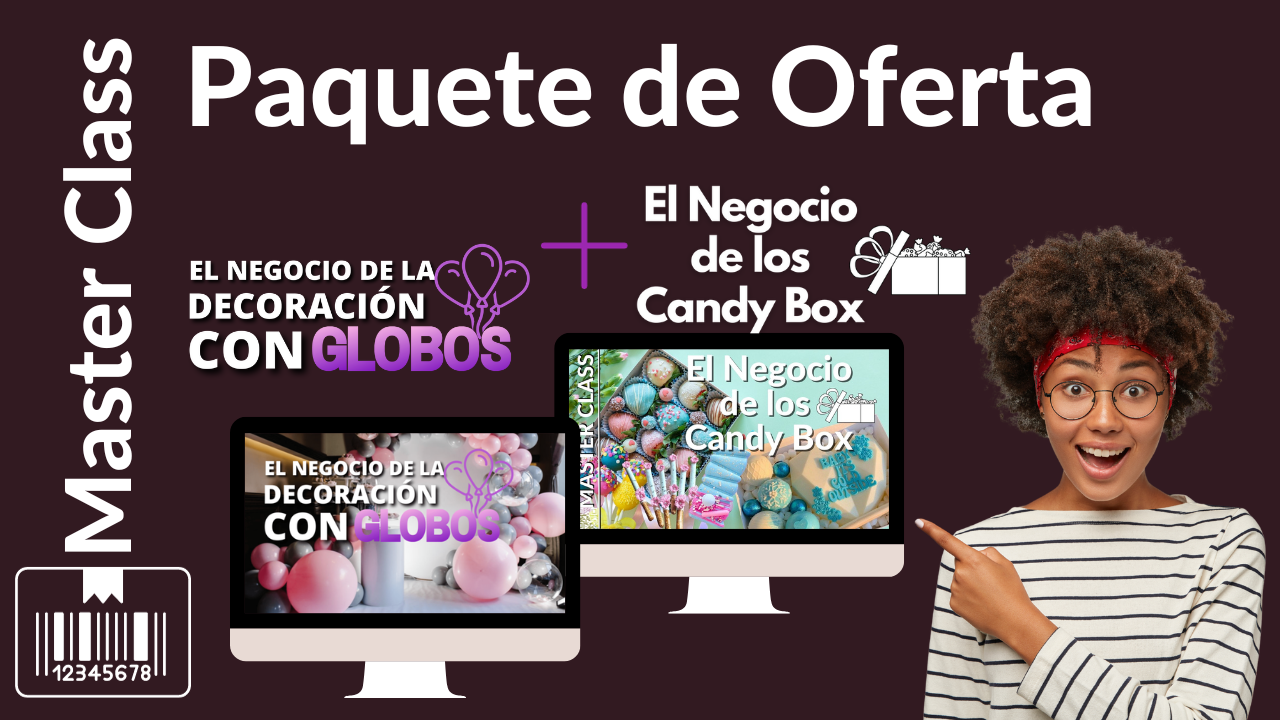 Este paquete exclusivo combina dos de nuestros cursos más solicitados: "El Negocio de la Decoración con Globos: Transforma tus Eventos" y "El Negocio de los Candy Box: Del Concepto a la Realidad".
